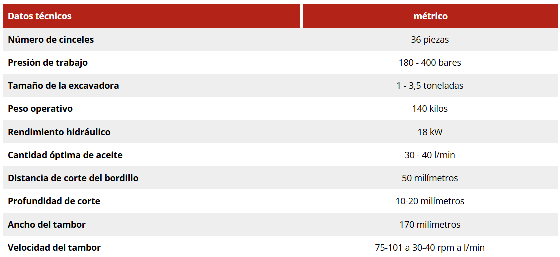 Fresadora hidráulica para excavadora que retira y perfila asfalto, hormigón o superficies contaminadas en cualquier posición, dejando un material tipo grava listo para reutilizar.