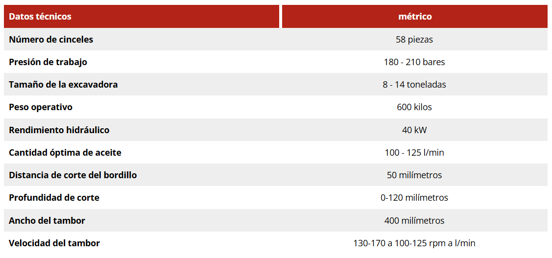 Fresadora hidráulica para excavadora que retira y perfila asfalto, hormigón o superficies contaminadas en cualquier posición, dejando un material tipo grava listo para reutilizar.